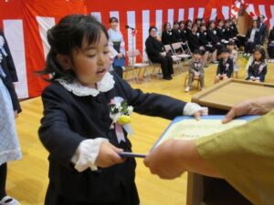 保育園だより 2026.03.23☆2026年3月☆ 3月21日(土)、第11回卒園式が無事に行われました。 園長先生から証書を受け取り、保護者の方へ手渡す姿、言葉や歌をうたう姿・・・ さすが年長さん!とても立派でした°˖✧✧ 4月からはいよいよ小学生。 17名の卒園児はドキドキ・わくわくした気持ちを胸に大きく羽ばたきます! 『パワー無限大!!』先生たちは、ずーっと応援しています。