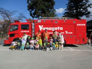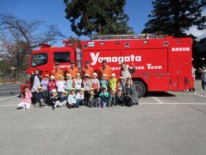 当日は、消防署の方がはしご車に乗ってきてくださいました。